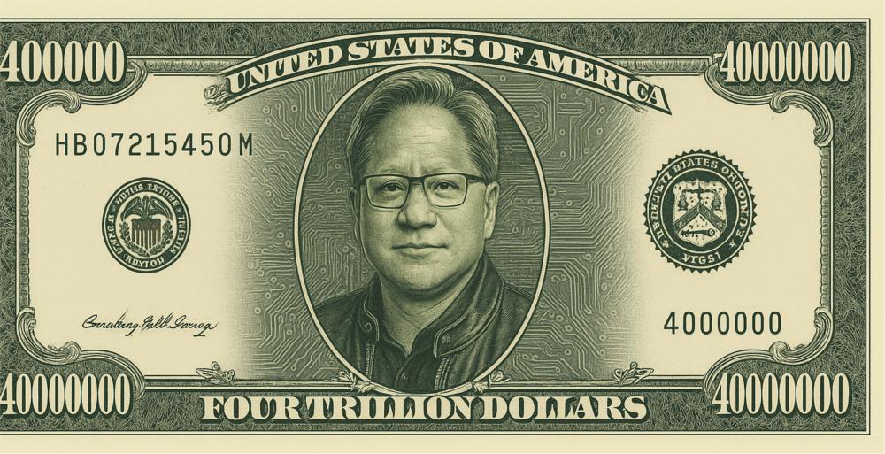 7月9日,英偉達市值首度超過4萬億美元,圖片由AI生成