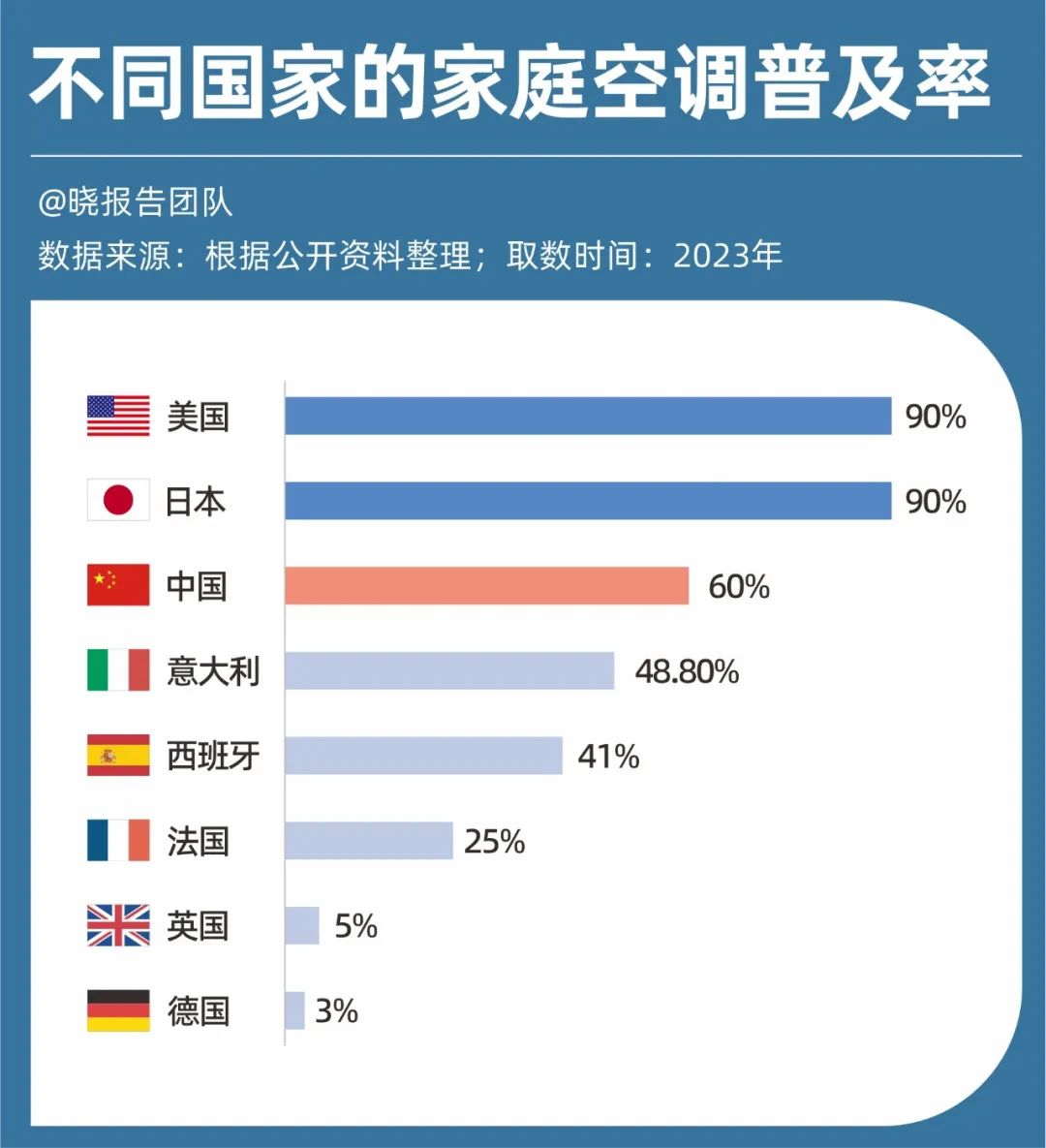 從全球范圍來看,中國家庭的空調(diào)普及率約為60%,美國、日本家庭的空調(diào)普及率高達(dá)90%,位居世界前列。