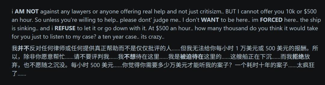 我試過請(qǐng)律師,但沒人愿意接手我這爛攤子,十年的爛攤子。