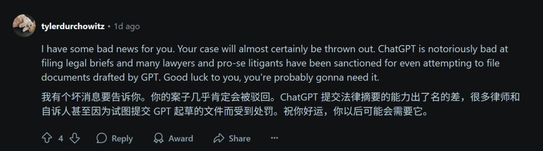 就在艱難時(shí)刻,ChatGPT登場(chǎng)了。網(wǎng)友通過它起草一系列文書,完成了復(fù)雜的案件梳理工作,法庭已決定于8月20日重啟聽證會(huì)。這又是一個(gè)靠AI解決現(xiàn)實(shí)生活麻煩的故事。