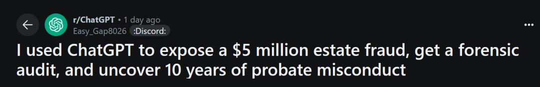 一起令人矚目的500萬美元遺產(chǎn)欺詐案,竟被ChatGPT成功揭露,相關(guān)帖子在美版貼吧Reddit引發(fā)網(wǎng)友熱議。