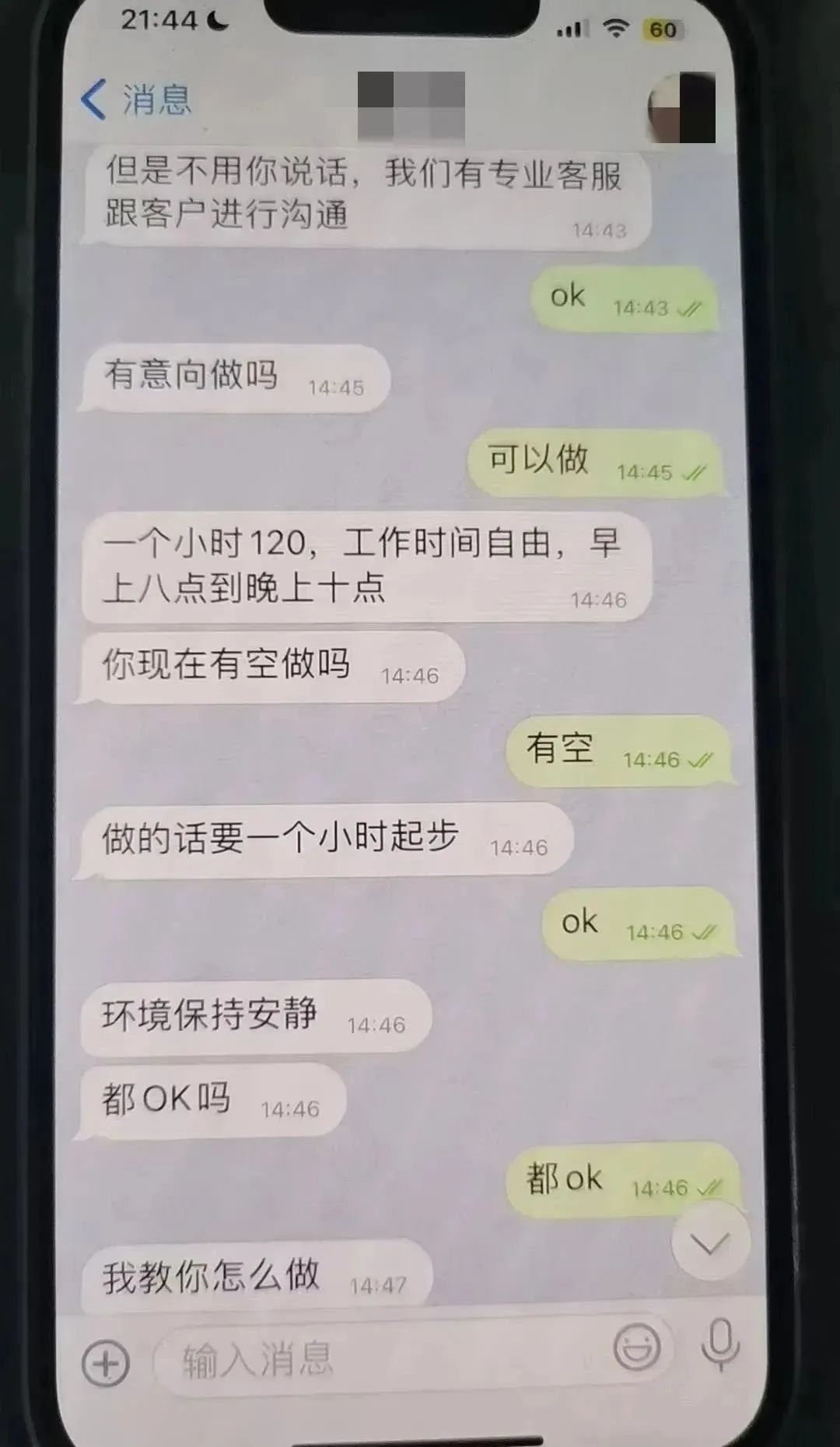 小張今年15歲,平時放學或周末休息時喜歡用電子產(chǎn)品打游戲,且技術不錯。機緣巧合下,他進了一個“接單微信群”,幫別人打游戲賺錢讓他小有成就感。近日,小張在群里詢問是否有人需要幫打游戲,一個網(wǎng)友回復稱“缺錢找我,我這里有個兼職,只要會打電話就行,1小時120元”,并留了個qq號讓小張加qq聊。