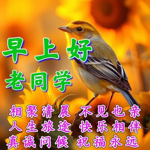 清晨送來問候的,都是心中牽掛。真誠送上祝福的,都帶來吉祥!太陽升起帶來希望。夜晚降臨帶來安康。新的一天,新的生活!新的美好!愿我們健康又開心,吉祥又如意,大家早上好!早安愉快!老同學(xué)!