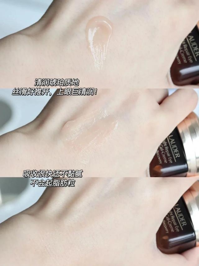 小棕瓶眼霜屬于半透明的凝霜狀質(zhì)地,觸感輕盈、延展性非常好。質(zhì)地上,更加輕薄水潤(rùn)、一抹即吸收。無論是干皮、油皮都很適合!