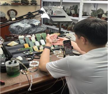 在石佛寺鎮(zhèn)蘇藝珠寶,調(diào)研隊成員切實感受到了玉器直播電商的蓬勃活力。企業(yè)負(fù)責(zé)人向?qū)W子們詳細(xì)介紹了鎮(zhèn)平玉雕悠久的發(fā)展歷史、豐富多樣的玉器品種以及線上線下融合的多元銷售模式。作為不產(chǎn)玉石卻擁有“全國最大玉雕加工銷售集散地”與“玉文化傳播中心”稱號的石佛寺鎮(zhèn),憑借完善的產(chǎn)業(yè)鏈和敏銳的市場洞察力,成功融入數(shù)字經(jīng)濟(jì)潮流。目前,全鎮(zhèn)有電商企業(yè)6800余家,淘寶、抖音等各類直播間超3000個,帶動電商直接從業(yè)人員5萬余人,2024年全縣電商交易額突破380億元,展現(xiàn)出“玉都”強(qiáng)大的線上發(fā)展動力。