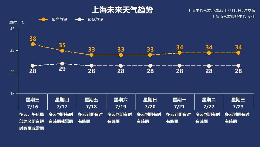 7月16日(周三):多云,午后部分地區(qū)陰天有短時陣雨或雷雨,氣溫28 - 38℃