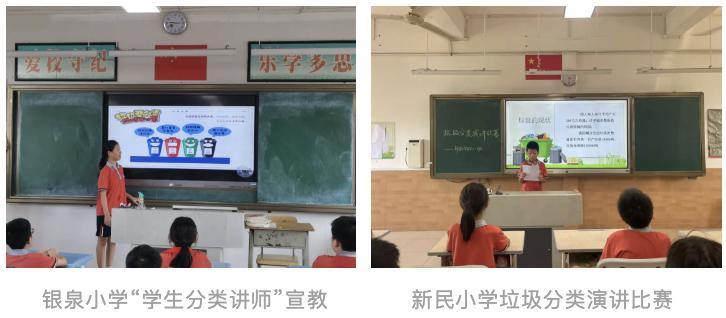 在主題班會的課堂上,教師們和“學(xué)生分類講師”利用PPT,通過真實案例剖析,將垃圾分類的科學(xué)方法與資源循環(huán)的生態(tài)價值緩緩道來。