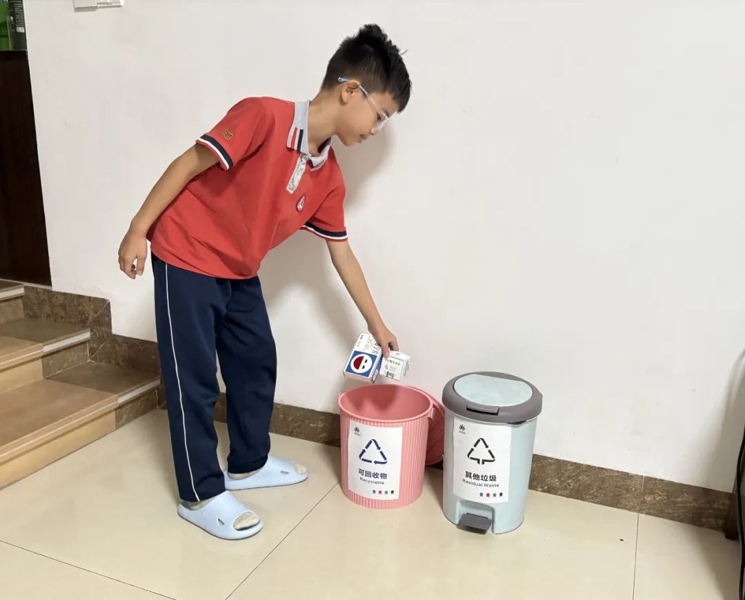 有家長發(fā)現(xiàn),孩子突然成了“分類監(jiān)督員”:踮著腳尖指著分類垃圾桶,耐心為父母講解廚余與其他垃圾的區(qū)分;把廢舊紡織物、廢舊報紙整齊疊放,仔細(xì)打包等待回收。