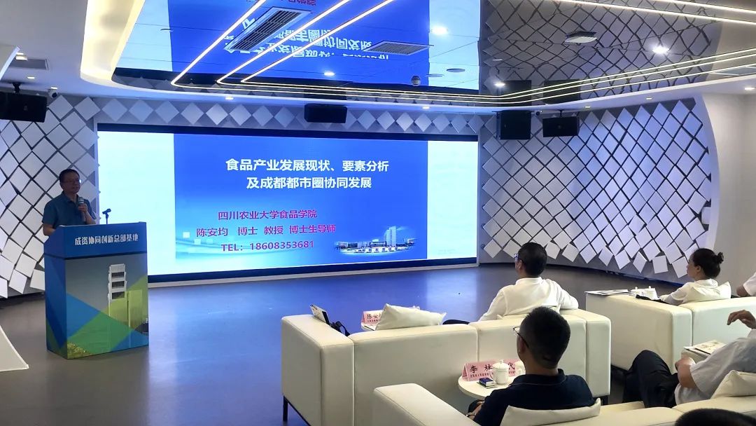 四川農(nóng)業(yè)大學(xué)食品學(xué)院教授陳安均發(fā)表主題演講。圖據(jù)成德眉資同城化暨成都都市圈建設(shè)