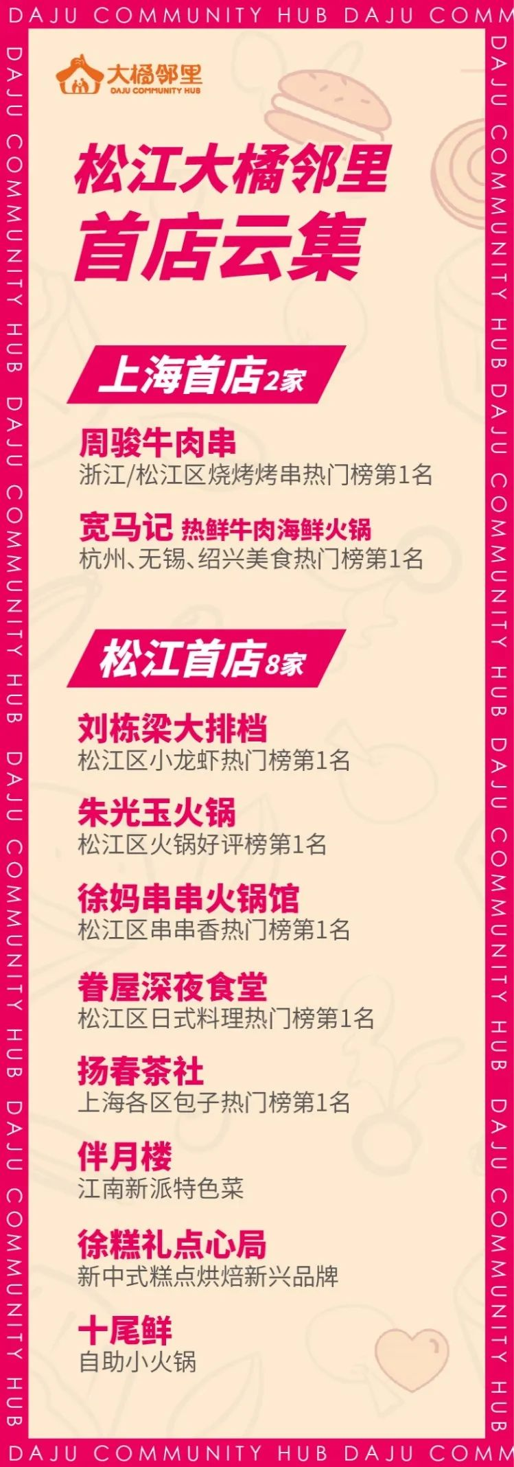 此外,劉棟梁大排檔、朱光玉火鍋等大批市區(qū)熱門品牌首次登陸松江,淞禧薈、??峤∩淼绕放浦骼砣耸走M松江,還有多家松江首店和網(wǎng)紅品牌,以及全新品牌形象店,提升了松江社區(qū)商業(yè)的水平。