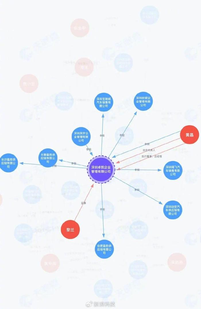 調(diào)查發(fā)現(xiàn),深圳翔飛法人是寶能汽車子公司實(shí)控人,其關(guān)聯(lián)方持有寶能系企業(yè)股權(quán)。天眼查信息顯示,深圳翔飛主要股東為深圳卓凱企業(yè)管理有限公司和深圳鳳宇企業(yè)管理有限公司。深圳卓凱法定代表人和實(shí)控人為黃晶,其關(guān)聯(lián)企業(yè)中有昆山寶能汽車有限公司等。