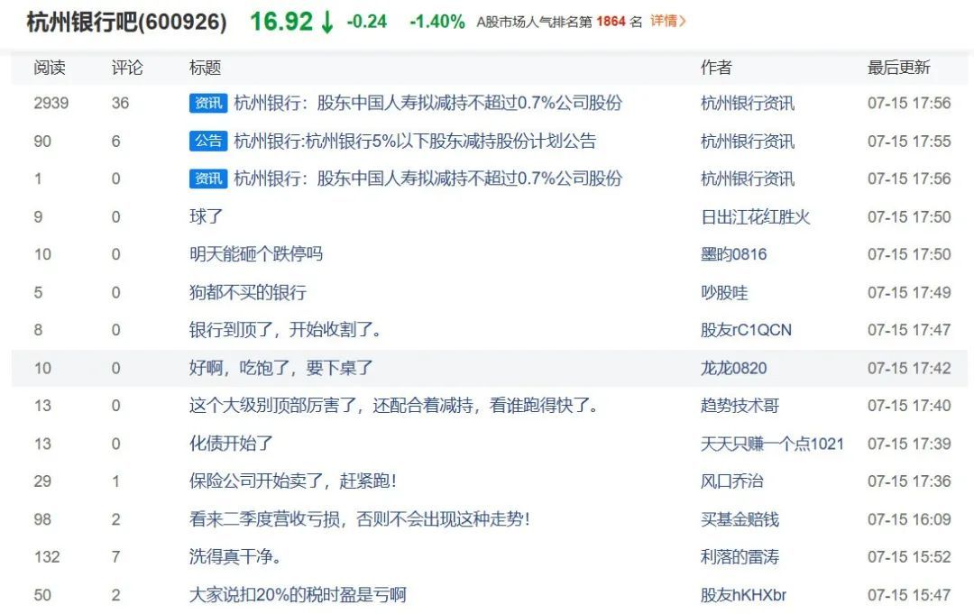 中國人壽擬清倉減持杭州銀行,或套現(xiàn)8.6億引關(guān)注