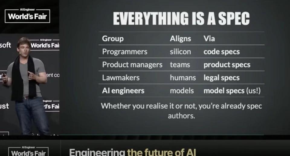 目前,硅谷正就AI開發(fā)范式展開一場激烈辯論。繼AI大神安德烈?卡帕西(Andrej Karpathy)力推“上下文工程”(context engineering),宣告提示詞工程(prompt engineering)過時后,OpenAI頂級對齊研究員肖恩?格羅夫(Sean Grove)也提出相同觀點,認(rèn)為提示詞工程確實過時了,同時他指出未來應(yīng)屬于“規(guī)范化編程”(spec - writing)。