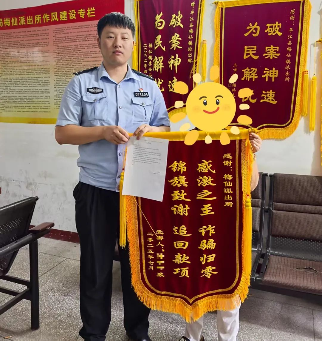 最終在多方協(xié)作下,成功將陳女士被轉(zhuǎn)走的錢追回80%。7月4日,陳女士專程趕到梅仙派出所,將一面印有“感激之至、詐騙歸零 錦旗致謝、追回款項(xiàng)”的錦旗和一封感謝信送到辦案民警手中,對民警鍥而不舍幫助其追回被騙資金表示衷心感謝。