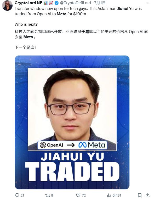 比如OpenAI感知團(tuán)隊(duì)負(fù)責(zé)人余嘉輝,就被拿來和C羅作對比。蘋果基礎(chǔ)模型負(fù)責(zé)人龐若鳴,據(jù)傳Meta為了挖他,提供了每年數(shù)千萬美元的薪酬方案。還有Scale AI的前CEO亞歷山大王,這位97年的小伙子,Meta投資143億美元將他挖來,現(xiàn)在他直接領(lǐng)導(dǎo)Meta新的超級智能實(shí)驗(yàn)室,連圖靈獎(jiǎng)得主LeCun都可能要向他匯報(bào)工作。