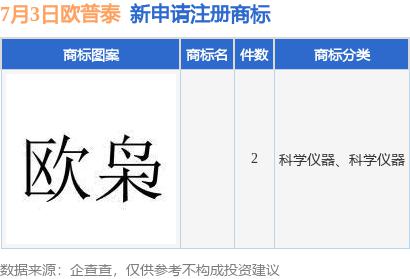 據(jù)證券之星消息,天眼查APP數(shù)據(jù)顯示,近日上海歐普泰科技創(chuàng)業(yè)股份有限公司新提交了2件商標注冊申請。商標申請詳情如下: