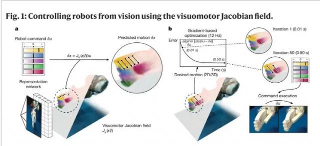 論文中的“純視覺”機(jī)器人控制方案采用了名為Visuomotor Jacobian Field(視覺運動雅可比場)的技術(shù),這是一種機(jī)器學(xué)習(xí)方法,可利用單個視頻攝像頭的數(shù)據(jù)控制機(jī)器人。