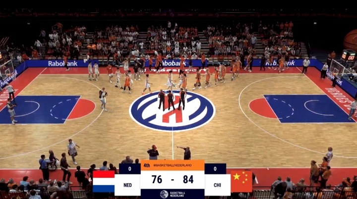 趙睿、胡明軒、朱俊龍、趙嘉義、胡金秋首發(fā)。上半場(chǎng)結(jié)束時(shí),中國(guó)男籃領(lǐng)先5分。第三節(jié)中國(guó)男籃拉開(kāi)分差,帶著13分優(yōu)勢(shì)進(jìn)入末節(jié)。末節(jié)最后階段,荷蘭男籃追分,但中國(guó)男籃最終以84比76贏得勝利。