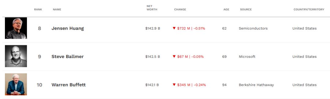若想更進(jìn)一步,中本聰則要挑戰(zhàn)目前全球前十大富豪中的“守門員”——“股神”巴菲特。根據(jù)福布斯的數(shù)據(jù),巴菲特當(dāng)前的身家約為1421億美元。