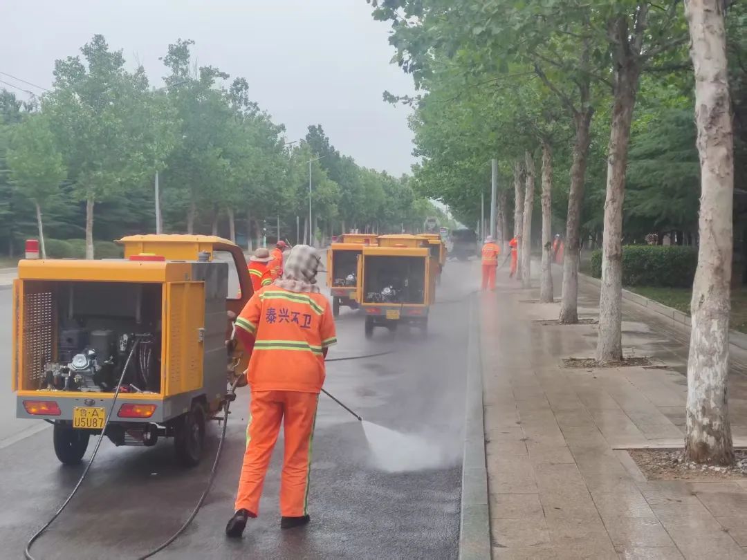7月15日清晨,濟(jì)南市萊蕪區(qū)鳳凰路的人行道上,一隊(duì)嶄新的小型三輪高壓沖洗車正在作業(yè)。這些車身鮮亮的新能源車輛駛過,連磚縫里的頑固污漬都被沖得干干凈凈,大大提升了工作效率,讓城市道路煥然一新。