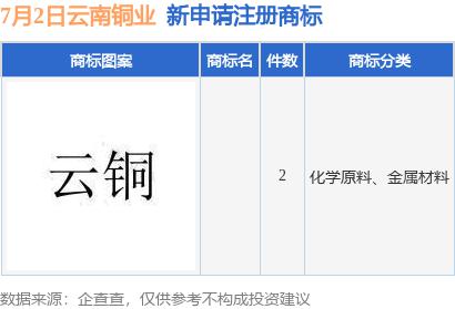 云南銅業(yè)新增兩件商標注冊申請
