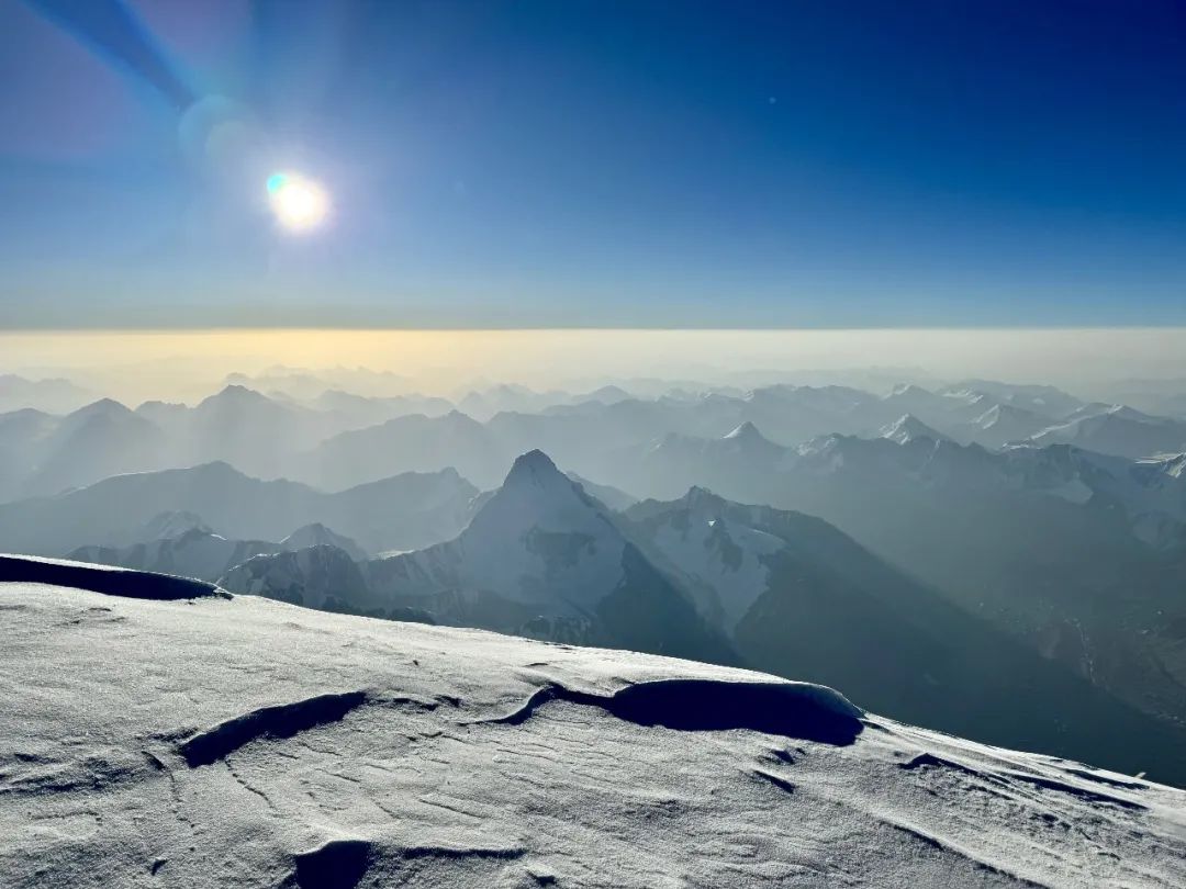 今年7月6日,來自嘉定安亭的吳曉彥站在了慕士塔格峰7546米的峰頂。寒風(fēng)卷著細(xì)碎的雪沫掠過她的臉頰,她下意識(shí)地轉(zhuǎn)了一圈,腳下是層巒疊嶂的雪山群。初升的太陽把雪頂染成金白色,宛如一場(chǎng)“白金盛宴”。“那一刻我心里就四個(gè)字,豁然開朗?!?/p>