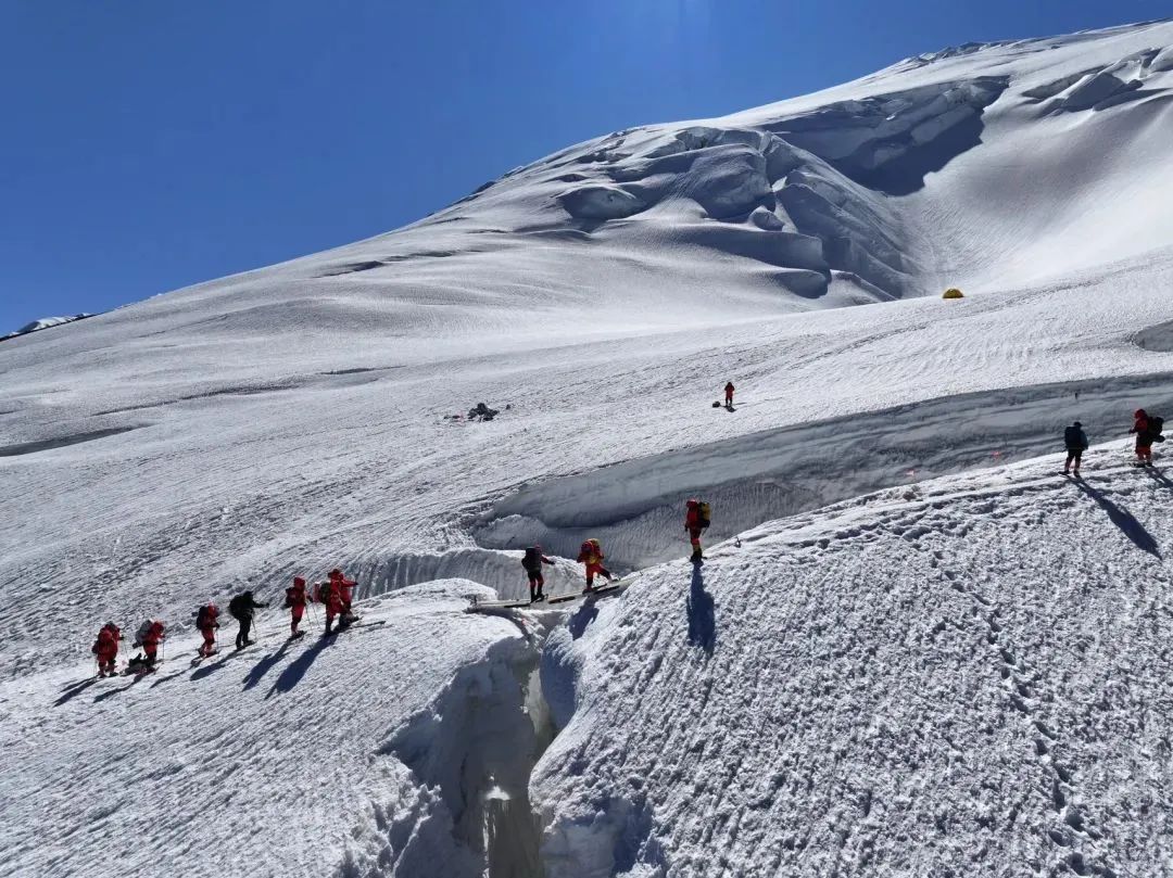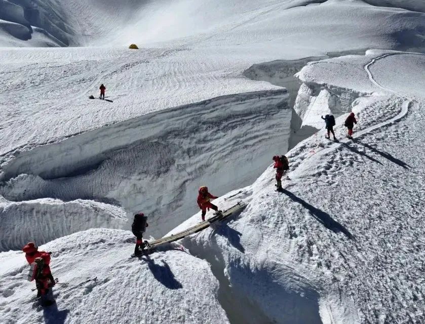 這次沖頂選在化冰期之前,本是按計(jì)劃避開風(fēng)險(xiǎn)的時(shí)段,卻意外撞上了冰裂縫的活躍期?!奥犝f有其他隊(duì)伍的隊(duì)員掉進(jìn)冰裂縫時(shí),心里咯噔一下。” 吳曉彥坦言,雪山攀登里天氣永遠(yuǎn)是第一位的,可今年的冰裂縫比往年更 “調(diào)皮”。有兩處必經(jīng)之地,僅靠幾十公分寬的雪橋連接,橋的兩邊就是深不見底的冰川裂縫,“像大地張開的嘴”。