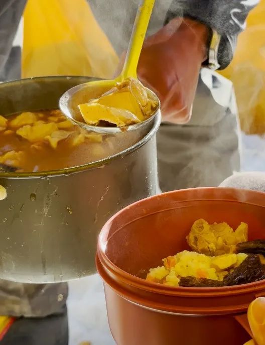 團(tuán)隊(duì)里藏著不少溫暖的細(xì)節(jié)。在6200米的營(yíng)地,向?qū)蝗粡谋嘲锾统鲆豢阱?,原來是一鍋雞湯。那鍋湯連鍋帶肉得有十幾斤,“不知道他們是怎么背著爬上來的”,她喝著熱湯,看著隊(duì)友們凍得通紅的鼻尖,突然覺得“再難的路,一起走就不苦了”。