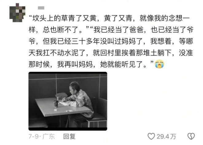 大叔寫(xiě)道,母親沒(méi)享過(guò)福,卻教會(huì)他骨子里的硬氣。是啊,母愛(ài)無(wú)聲,用瘦小身軀扛起家的重?fù)?dān),用默默付出教會(huì)我們堅(jiān)韌。如今大叔在工地?fù)]汗如雨,他說(shuō)想想母親端大鐵鍋的勁兒,自己就又有了力氣。原來(lái),母愛(ài)是一種傳承的力量。