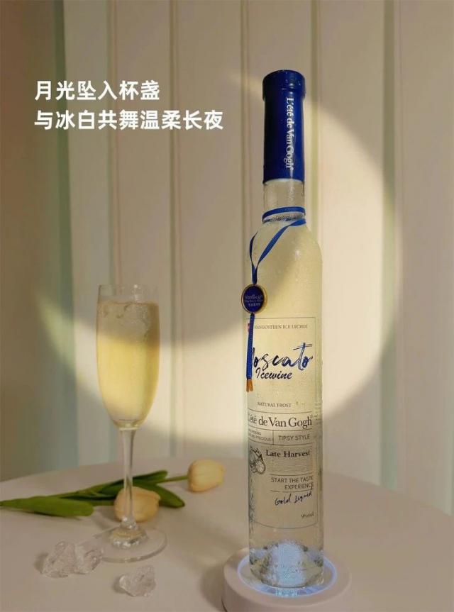 它9%的黃金度數(shù),沒有干紅干白的澀感和燒喉感。每瓶冰酒都要用9公斤以上精選葡萄釀造,是葡萄酒中的“濃縮精華”。靈感源自梵高名畫的瓶身,擺在桌上自帶氣氛和高級感,拍照、送禮、聚會、露營都合適。