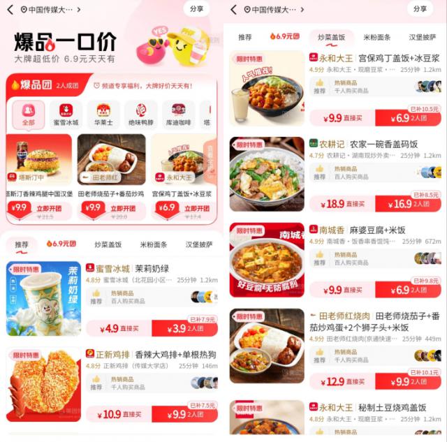 傳統(tǒng)外賣以店鋪展示為主,商家需投放廣告維持曝光;拼好飯以商品展示為主,中小餐飲商家用低價(jià)換曝光和銷量,通過高周轉(zhuǎn)盈利。