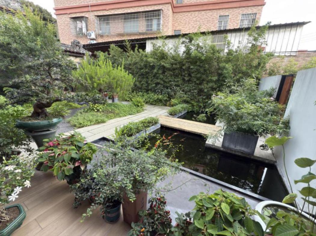 屋主將傳統(tǒng)建筑與現(xiàn)代建筑相結(jié)合,院內(nèi)種植各類植物超30多種、100多株。造型盆景是庭院的亮點(diǎn),以獨(dú)特的姿態(tài)展現(xiàn)園藝匠心。灌木層豐富多樣,池塘里水生植物搖曳,錦鯉穿梭,構(gòu)建起“水陸空”立體綠植生態(tài)。