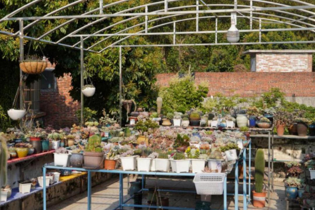 這是一個頂層庭院。為營造層次豐富的立體花園,屋主獨(dú)具匠心,以1120余株多肉植物為基礎(chǔ)景觀,巧妙搭配30株蘭花、15株朱頂紅、13株蝴蝶蘭、10株三角梅、10株月桂、6株金邊吊蘭,再用數(shù)棵萬年青、太陽花、茶花、藍(lán)雪花、雞冠花、曇花點(diǎn)綴其中。整個庭院高低錯落,四季繁花似錦。