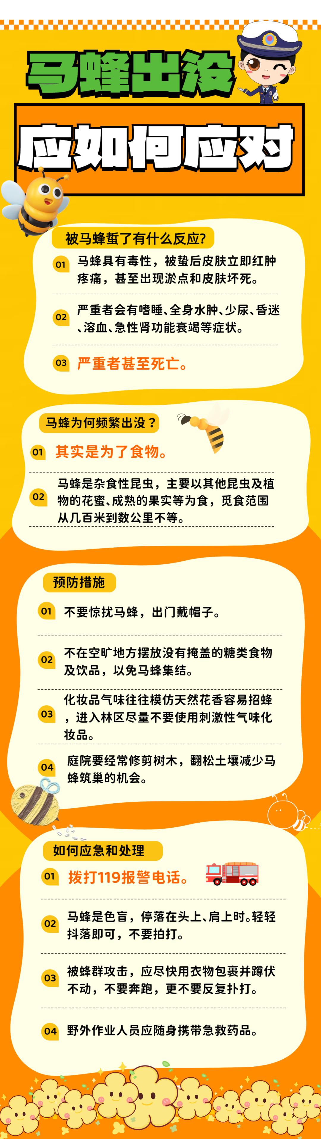 貴貴提醒,馬蜂攻擊性強、毒性大,自行處理易引發(fā)蜂群圍攻,造成嚴重傷害。快來學習這份“應對手冊”吧。
