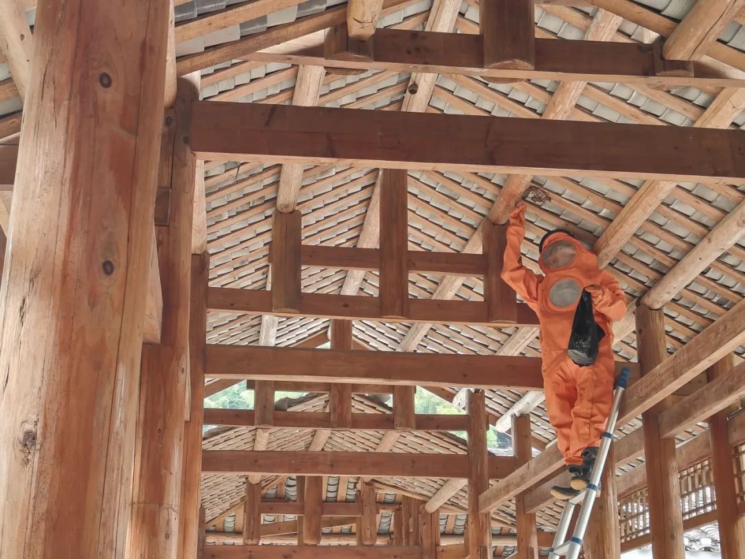除了此次事件,還有其他相關(guān)案例。7月2日,黎平消防在肇興侗寨景區(qū)巡查時,發(fā)現(xiàn)博物館展示中心木梁上有一個籃球大小的馬蜂窩,影響周邊群眾生活。消防人員攜帶工具前往,20分鐘后清除馬蜂窩并消殺隱患。