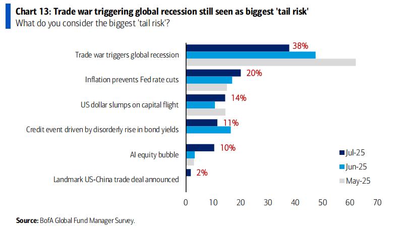 (38%的FMS投資者認(rèn)為貿(mào)易戰(zhàn)引發(fā)的全球經(jīng)濟(jì)衰退是頭號(hào)“尾部風(fēng)險(xiǎn))
