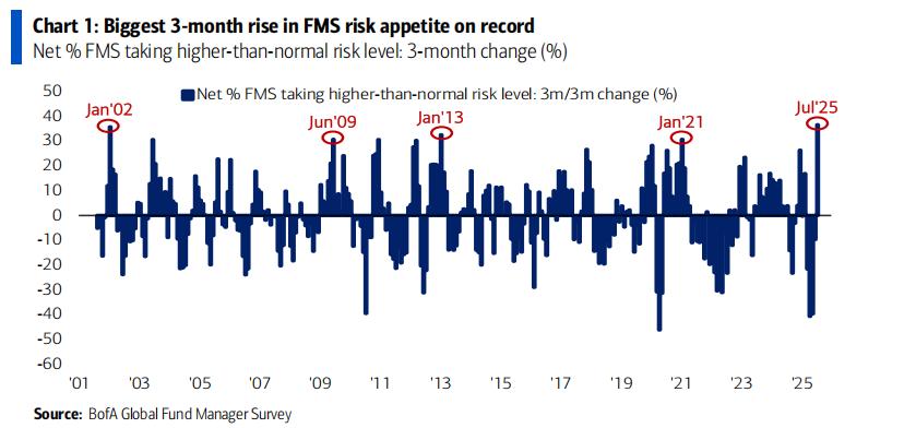 (基金經(jīng)理的三個(gè)月風(fēng)險(xiǎn)偏好情緒升至有史以來最高水平)