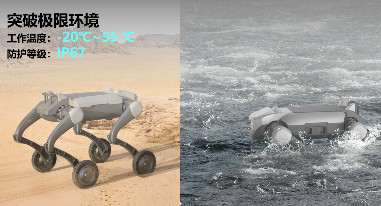 - 全天候作業(yè):整機(jī)具備IP54防塵防水能力,關(guān)節(jié)模組經(jīng)耐腐蝕處理,可在雨雪、高溫、風(fēng)沙等惡劣環(huán)境中穩(wěn)定運(yùn)行,滿足7×24小時全天候工作需求。