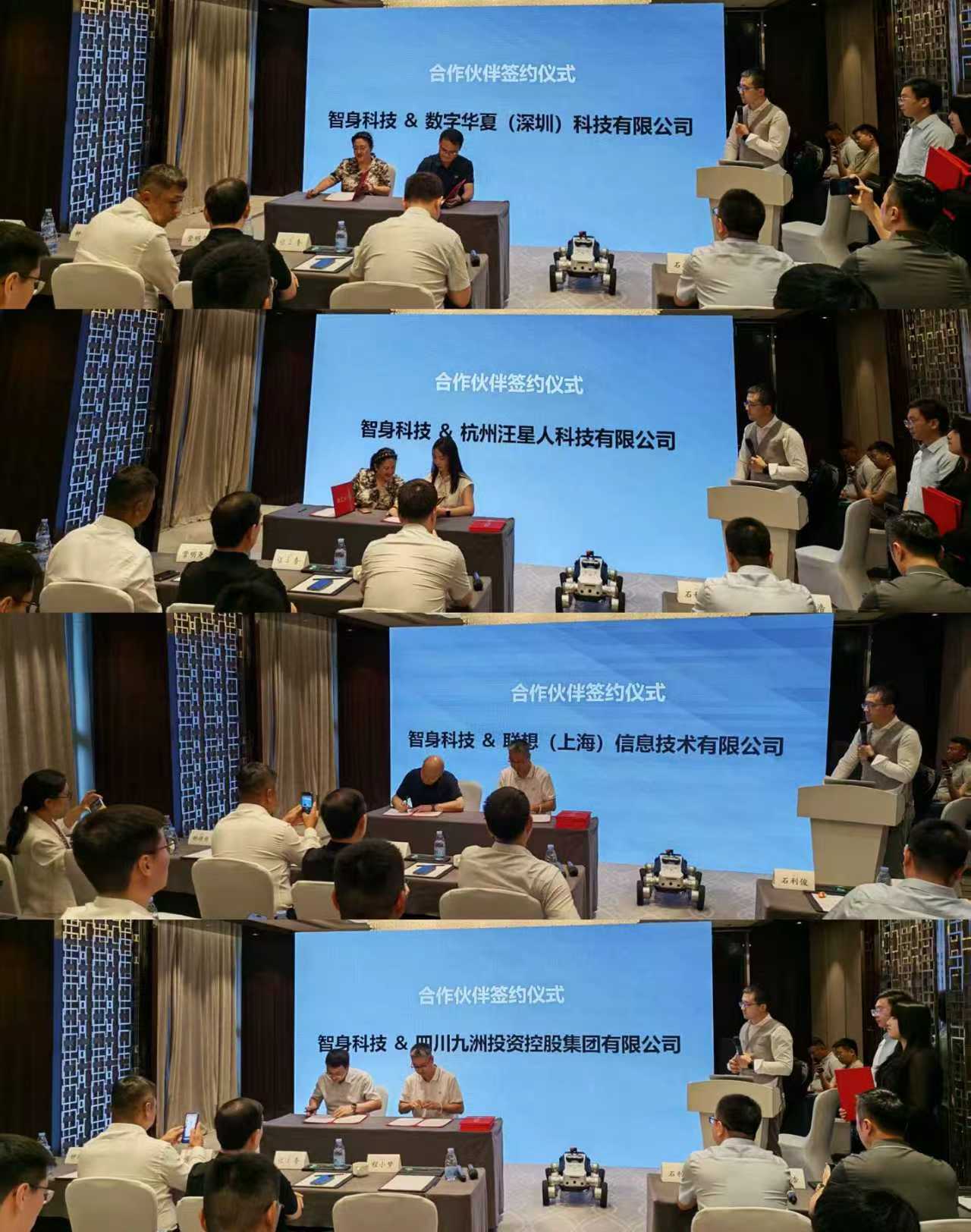 大會現(xiàn)場,智身科技與聯(lián)想(上海)信息技術(shù)有限公司、四川九洲投資控股集團(tuán)有限公司、汪星人科技、數(shù)字華夏(深圳)科技有限公司四家領(lǐng)軍企業(yè)簽署戰(zhàn)略合作協(xié)議,正式啟動覆蓋工業(yè)巡檢、智慧城市、應(yīng)急救援等10余個高價值行業(yè)、50 + 細(xì)分場景的“千業(yè)賦能計劃”,標(biāo)志著具身智能技術(shù)規(guī)模化落地邁入生態(tài)共建新階段。