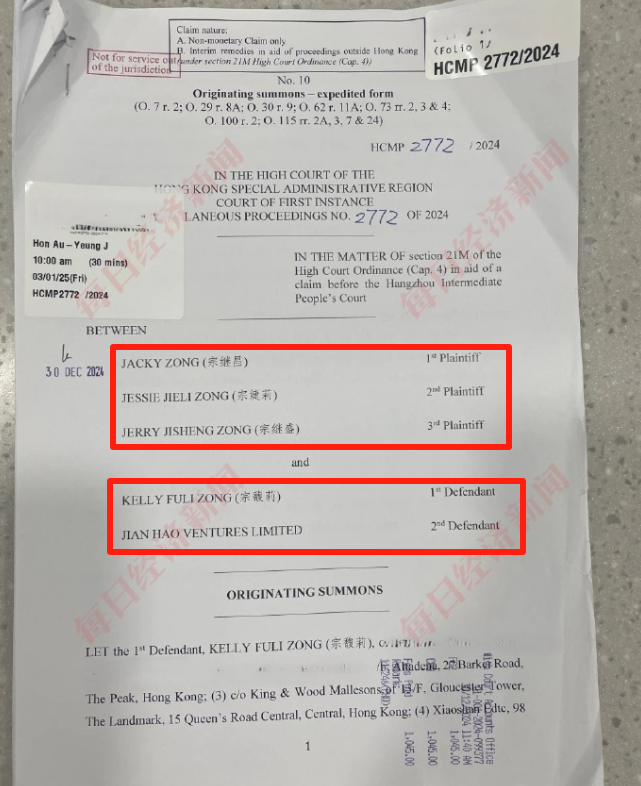 此外,宗馥莉還拿出2020年的遺囑,向法院主張宗慶后的所有境外資產(chǎn)都歸她繼承。