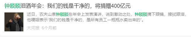 但他沒有這么做,即便全網(wǎng)都在罵農(nóng)夫山泉,母親也因此受到影響離世,他都沒有說過娃哈哈一句壞話。