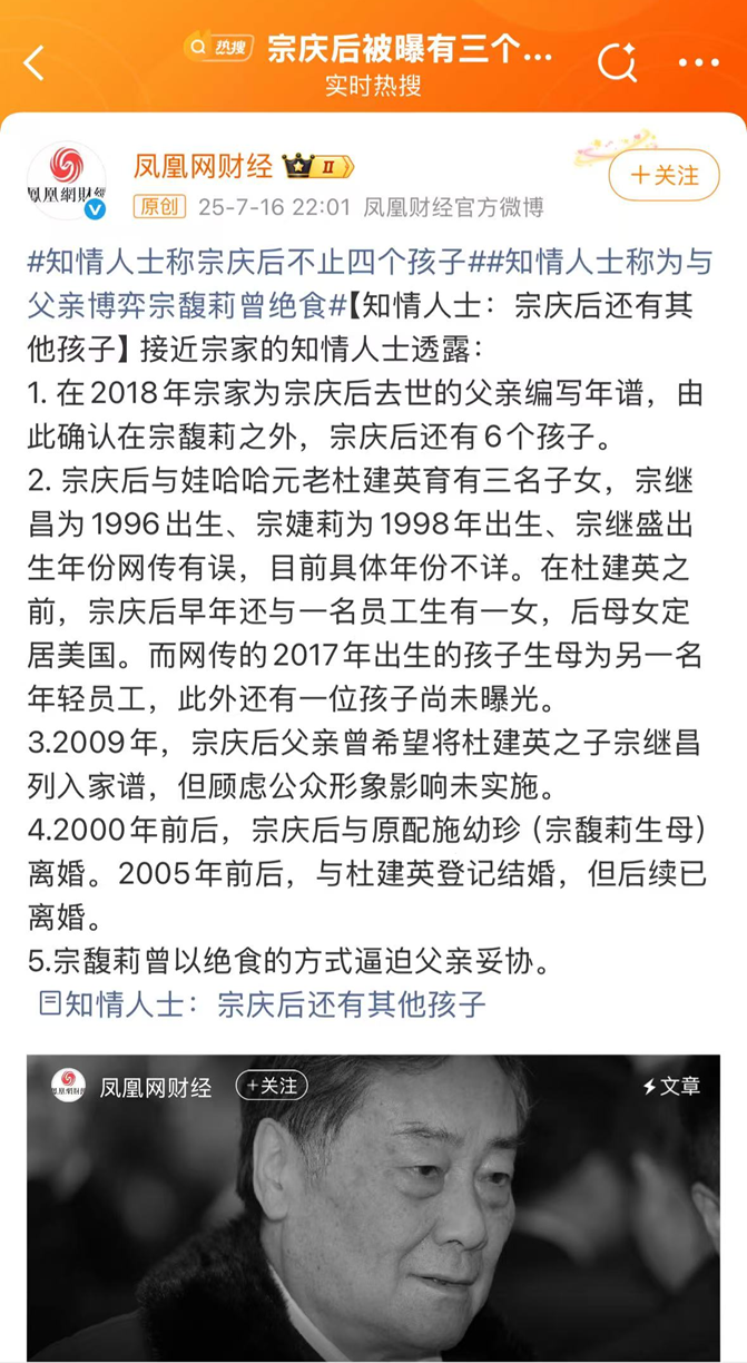 2. 杜建英并非宗慶后唯一的情人,宗慶后早年還與一名員工育有一女,后來母女都定居美國(這或許能解釋宗慶后為何常說自己去美國)。