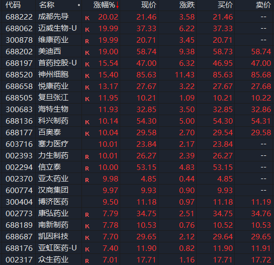 創(chuàng)新藥板塊再度掀起漲停熱潮