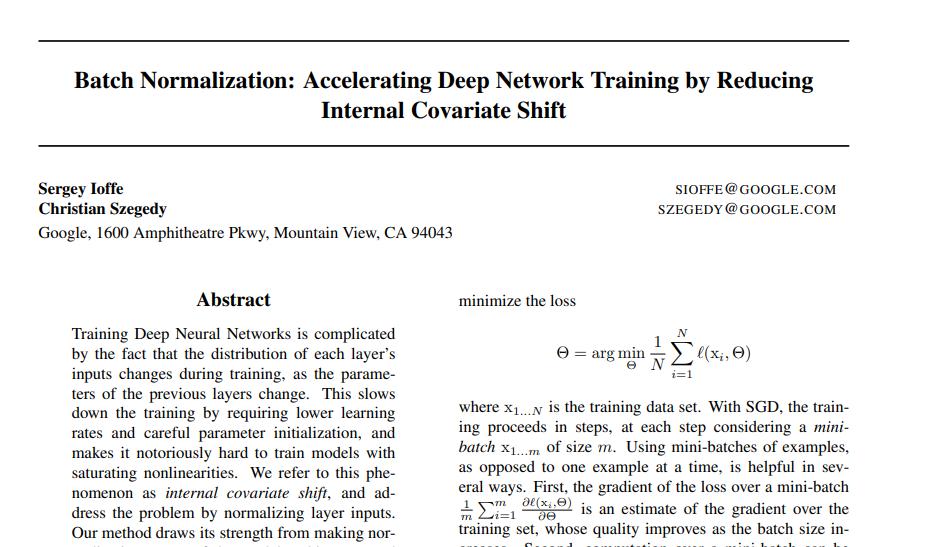 這篇論文就是深度學(xué)習(xí)領(lǐng)域無人不曉的《Batch Normalization: Accelerating Deep Network Training by Reducing Internal Covariate Shift》。