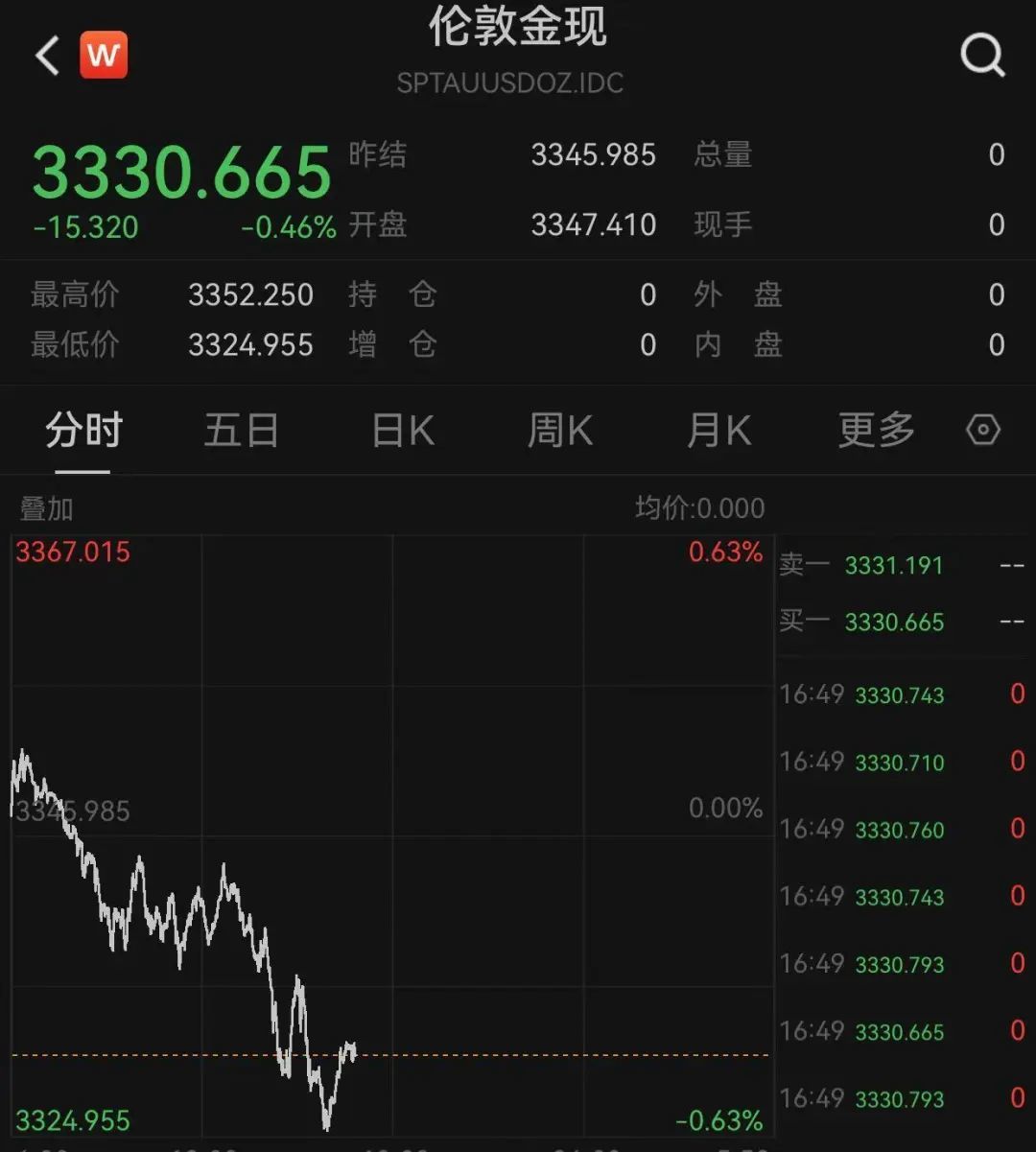 黃金方面,截至發(fā)稿一度跌破3330美元/盎司。7月17日開(kāi)盤(pán),國(guó)際金價(jià)突然跳水,現(xiàn)貨黃金目前已失守3340美元大關(guān)。