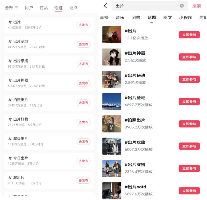 正因如此,小紅書上以“出片”為關(guān)鍵詞出現(xiàn)了“出片圣地”“出片穿搭”等一系列話題,讓“出片”成為普通人能體驗(yàn)的創(chuàng)作。