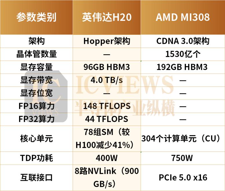 眾所周知,H20與MI308芯片分別是英偉達和AMD為中國市場定制的AI芯片。