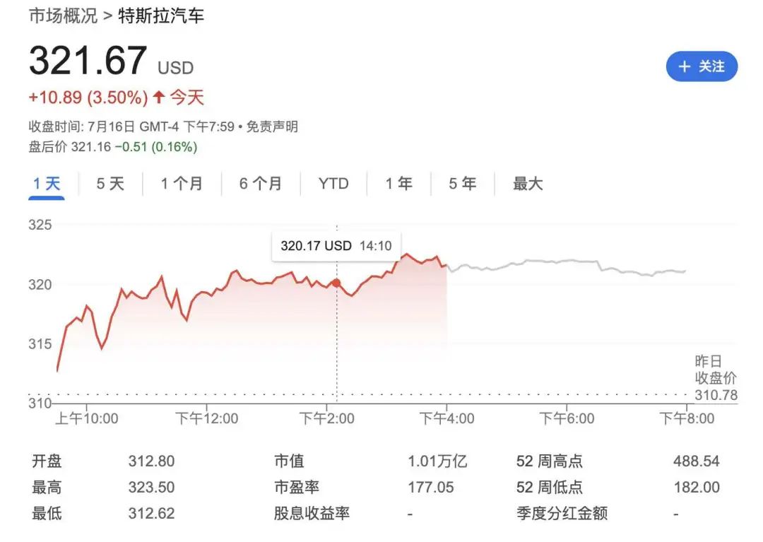 Model Y L消息傳出后,美國時(shí)間7月16日美股收盤時(shí),特斯拉股價(jià)攀升3.50%,成交307.28億美元,成為當(dāng)天美股成交額第一名。