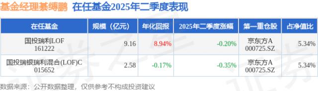 綦縛鵬2025年二季度基金表現(xiàn):國投瑞利LOF季度跌幅0.2%