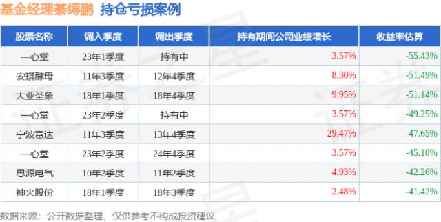 3、一心堂(002727)折戟案例:綦縛鵬管理的國投瑞銀瑞源靈活配置混合A基金在2023年1季度買入一心堂,已連續(xù)持有2年又1個季度。持有期間估算收益率為 - 55.43%,2023 - 2024年年報營業(yè)總收入增幅達3.57%。